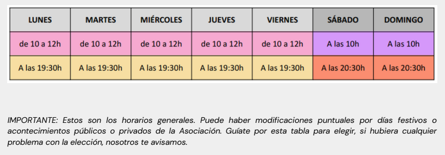 PLEASE NOTE: These are the general opening hours. There may be occasional changes due to public holidays or public or private events organised by our association. Use these opening hours as a guide to help you choose. If there are any issues with your decision, we will let you know.